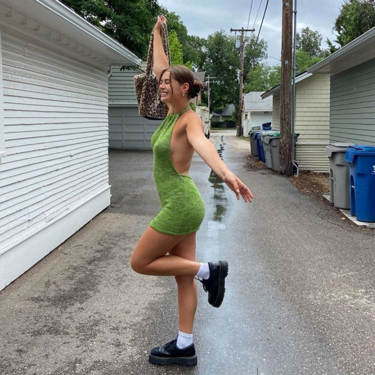 Halter backless mini dress