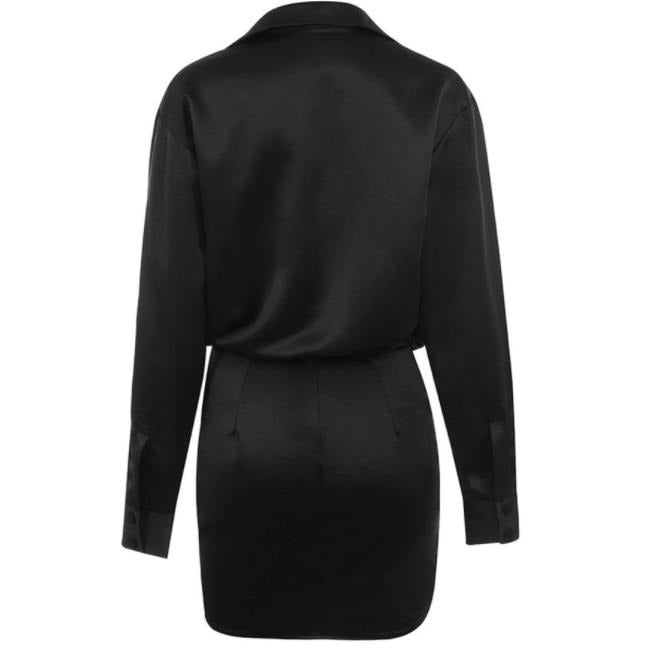 Black Satin Drape Dress
